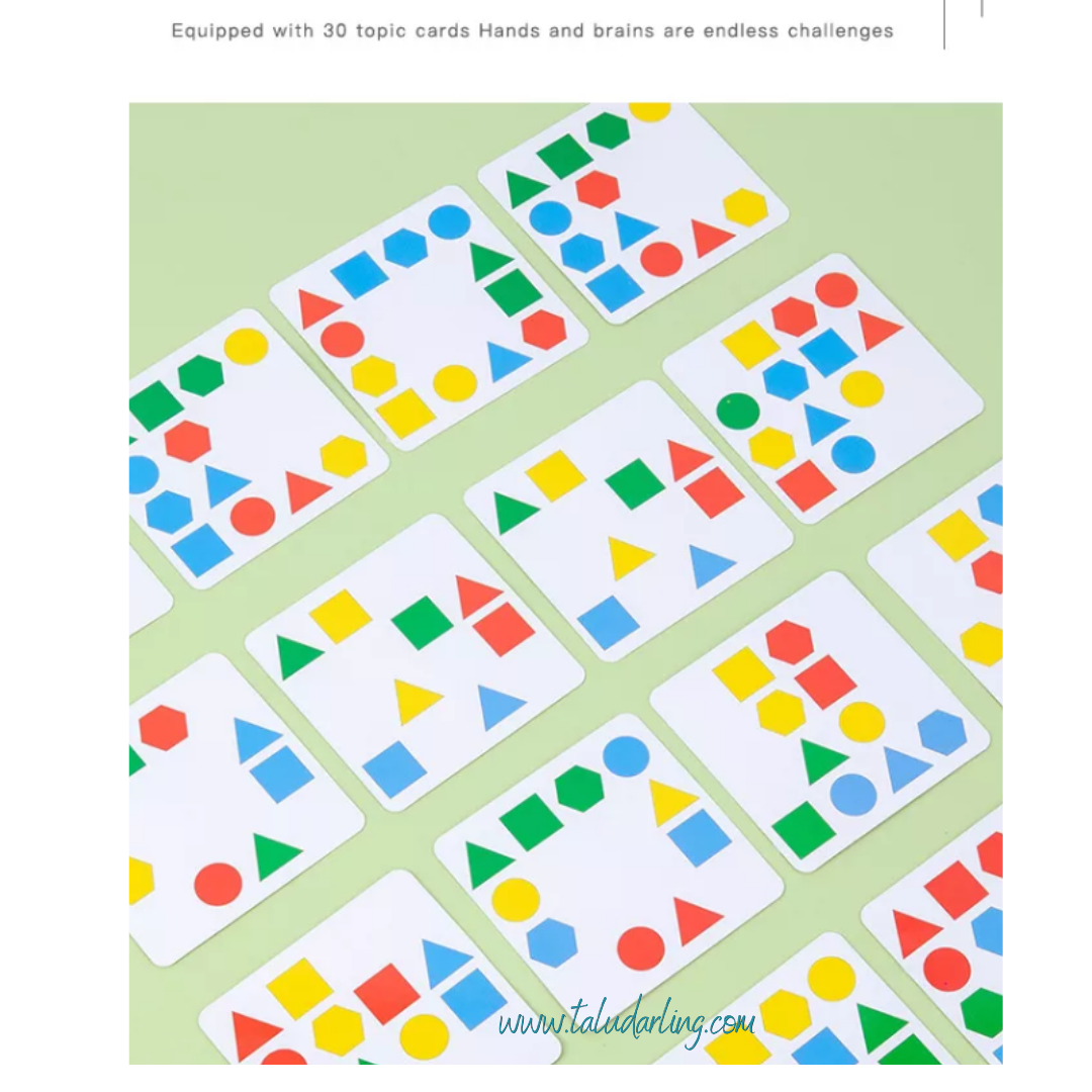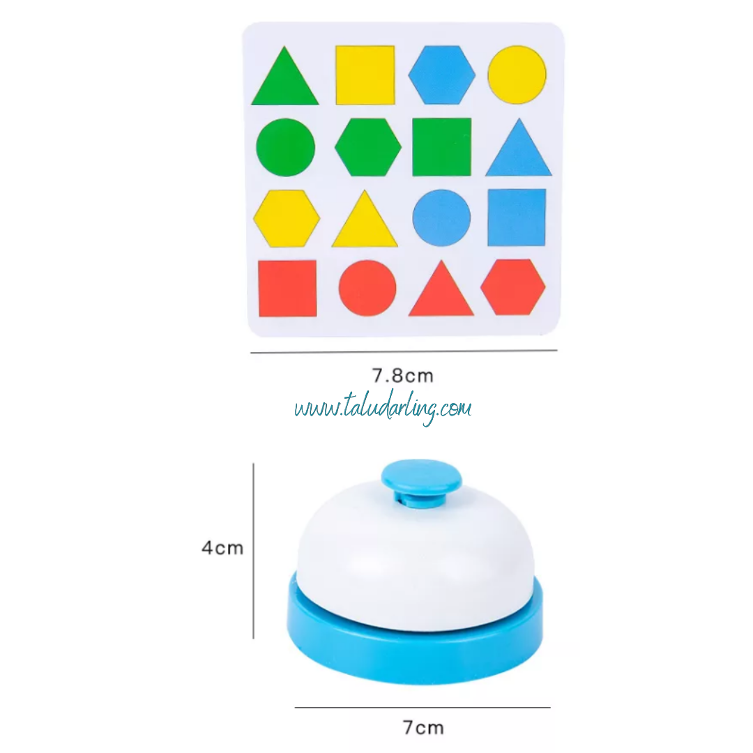 The package contains 2 wooden base with hole of different shape, 32 wooden blocks, 30 cards and a bell, suitable for 2 players. Choose the card randomly, complete color or shape matching by filling the puzzle. It help to train the toddler kids recognize colors and shapes, increase observation and logic ability, hand-eye coordination.